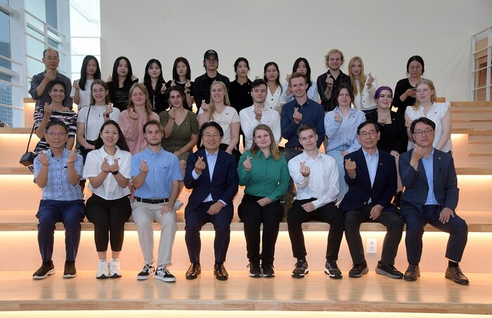 | ▲ 강기정 광주광역시장(앞줄 왼 쪽부터 네 번째)이 20일 오전 시청 1층 열린청사에서 5‧18민주화운동 등 광주 민주역사를 배우기 위해 광주를 방문한 독일 함부르크 청년학생 17명과 기념촬영을 하고 있다. /광주광역시 제공 |
