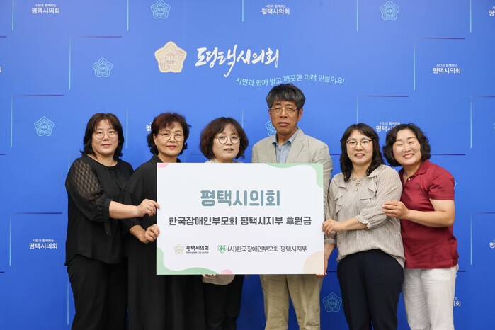 이날 전달식에는 평택시의회 유승영 의장과 한국장애인부모회 평택시지부 강태숙 지부장, 이원선·윤복희 부회장, 이성진 감사, 모봉연 이사 등 6명이 참석했다.