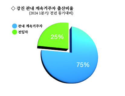 군에 따르면 올 1월부터 3월까지 1분기 강진군 출생아수는 52명으로 전년 같은 기간 29명과 비교해 23명이 늘어 79.3% 증가한 것으로 나타났다.