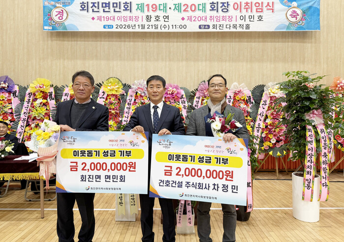 이날 기탁식에서는 회진면 면민회(회장 이민호)가 200만 원, 건호건설 주식회사가 200만원을 각각 기탁하며, 지역의 어려운 이웃과 복지 사각지대 해소를 위한 따뜻한 나눔에 동참했다.