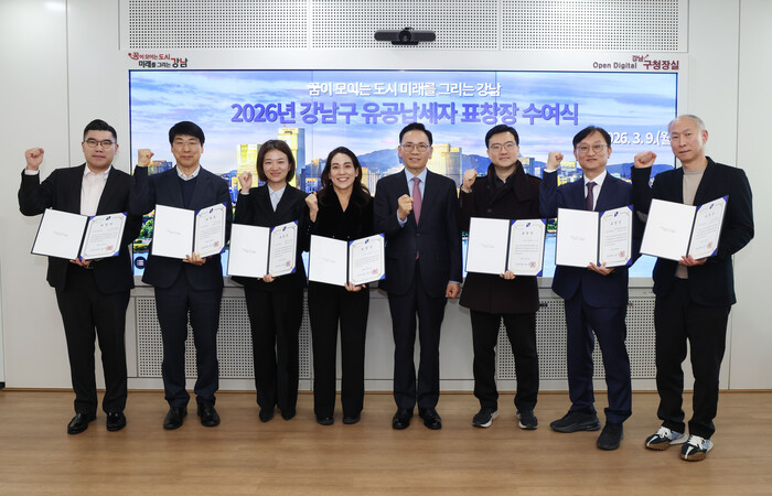 [시민일보 = 이대우 기자] 서울 강남구(구청장 조성명)가 최근 구청에서 ‘2026 유공납세자 표창장 수여식’을 개최했다.