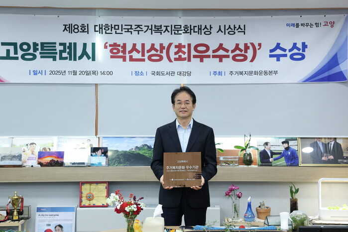 [시민일보 = 민장홍 기자] 경기 고양시가 최근 주거복지문화운동본부가 주최하고 국토교통부가 후원하는 ‘제8회 대한민국주거복지문화대상’에서 혁신상(최우수상)을 수상했다고 밝혔다.