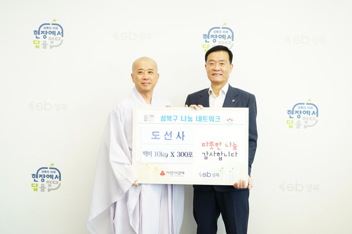 도선사가 전달한 백미 300포는 성북구 경로당과 저소득 가정에 배부돼 올여름과 가을에도 따뜻한 밥상을 이어갈 예정이다. 이번 나눔은 지역과 경계를 넘어선 진심 어린 연대와 배려를 보여주는 사례로 남게 됐다.