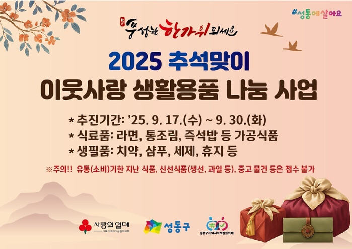 | ▲ 성동구 추석맞이 이웃사랑 생활용품 나눔 사업 홍보 이미지. (사진=성동구청 제공) |
