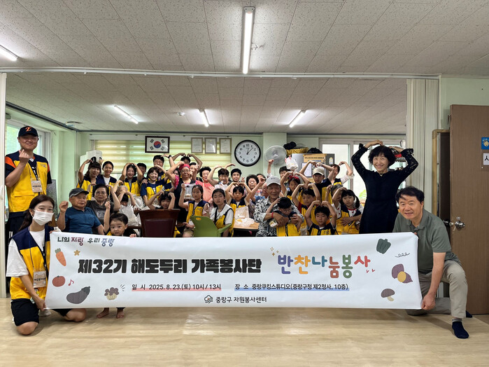 [시민일보 = 여영준 기자] 중랑구(구청장 류경기) 제32기 해도두리 가족봉사단은 지난 8월 23일(토), 취약계층 어르신들을 대상으로 간식 나눔 봉사를 펼쳤다. 이번 활동에는 총 10가족 30명이 참여해 직접 간식을 만들고, 정성을 담아 전달하며 따뜻한 이웃사랑을 실천했다.