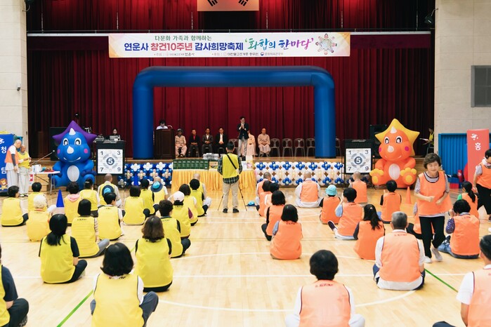 대한불교조계종 김포 연운사가 최근 경기 김포시민회관에서 창건 10주년을 맞아 다문화가족과 함께하는 감사·희망축제를 개최했다. 사진은 행사에서 김병수 김포시장(무대 위)이 인사말을 하고 있는 모습. (사진=김포시청 제공)