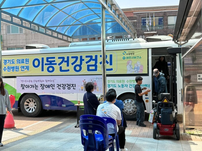 경기 여주시보건소 건강증진과는 최근 경기도의료원 수원병원과 연계해 여주시장애인 복지관에서 이동 건강검진을 실시했다. 사진은 이날 건강취약계층 등을 위해 출장 검진 버스에서 건강검진을 실시하고 있는 모습. (사진=여주시청 제공)