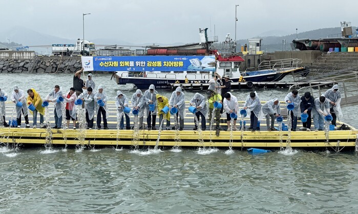 방류식에는 지역 어업인들과 해양 관련 단체 등 40여명이 공동으로 참여했다.
