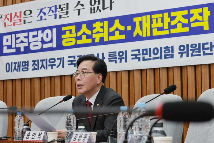 송 원내대표는 이날 오전 국회에서 진행된 원내대책회의에서 “이재명 대통령은 더 이상 본인의 공소취소를 위해 국가 형사사법시스템 자체를 유린하는 이런 사태를 방치하지 말기 바란다”며 이같이 말했다.