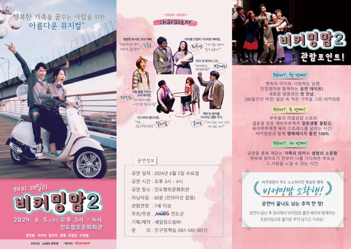 군 관계자는 “행복한 가족을 꿈꾸는 군민들을 위해 임신과 출산을 소재로 한 가족 공감 뮤지컬을 준비했다”며 “공연을 통해 생명의 소중함과 출산ㆍ육아가 안겨주는 행복을 널리 알려 저출산에 대응하며 출산 친화적인 환경 조성을 위해 최선을 다하겠다”고 말했다.