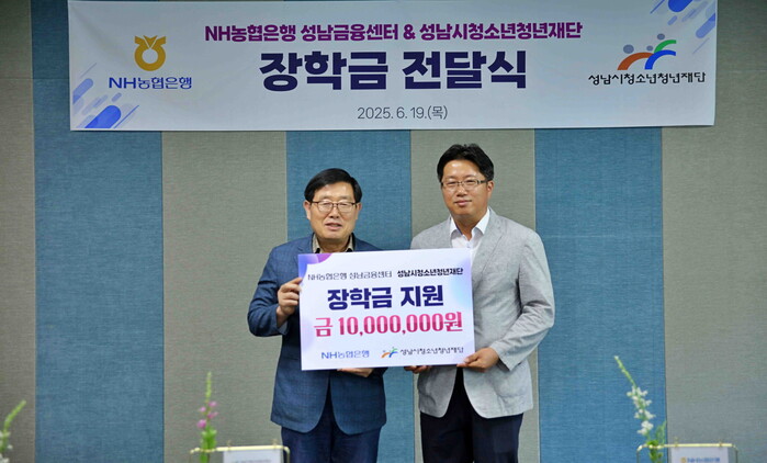 [성남=오왕석 기자] 성남시청소년청년재단(대표이사 양경석)은 6월 19일, NH농협은행 성남금융센터(센터장 송종선)의 후원으로 성남시 취약계층 청소년을 위한 장학금 전달식을 개최했다고 밝혔다.