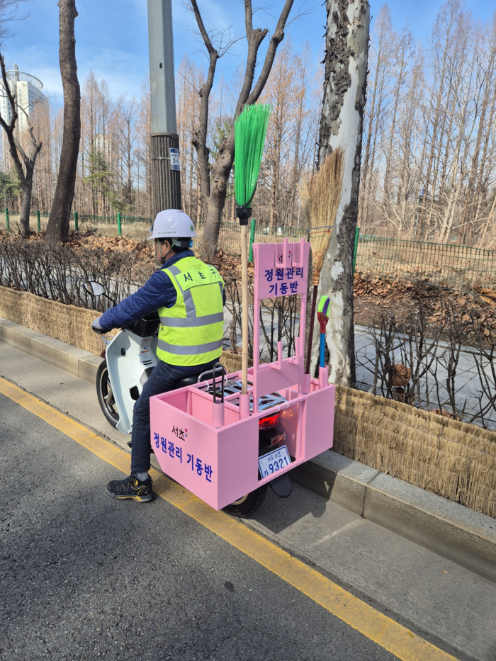 관리 대상은 신반포로 등 6개 구간, 총 25.5km에 달하는 정원형 녹지다. 2명으로 구성된 기동반은 각 3개 구간을 전담하고, 이륜차를 활용해 주 2~3회 이상 순찰하며 세심한 관리에 나설 예정이다. 혹서기 관수, 은행 열매 처리, 월동 작업 등 계절별 여건에 따라 운영 일정은 탄력적으로 조정할 계획이다.