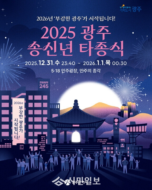 행사에는 강기정 시장을 비롯한 2025년 한 해 광주를 빛낸 시민대표 18명으로 구성된 타종 인사와 시민 등 3000여명이 참석할 예정이다.