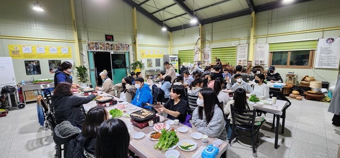 | ▲ 해남군 삼산면 무선동 한옥마을에서 개최된 '2022년 해남 농산어촌유학의 날' 행사 저녁파티를 즐기고 있는 학생과 학부모들 / 사진 = 해남교육지원청 제공 |