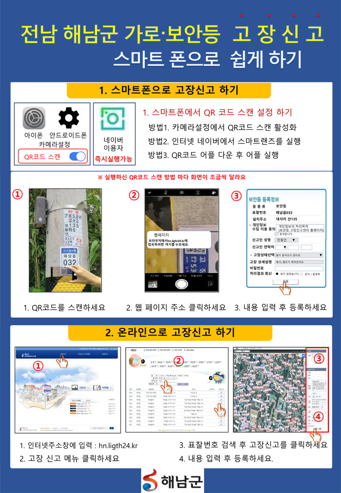 | ▲ 해남군, 가로·보안등 고장 QR 코드 신고 안내 이미지 / 해남군 제공 |