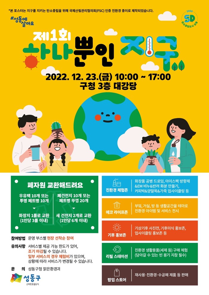 | ▲ 제1회 하나뿐인 지구 행사 포스터. (사진제공=성동구청) |