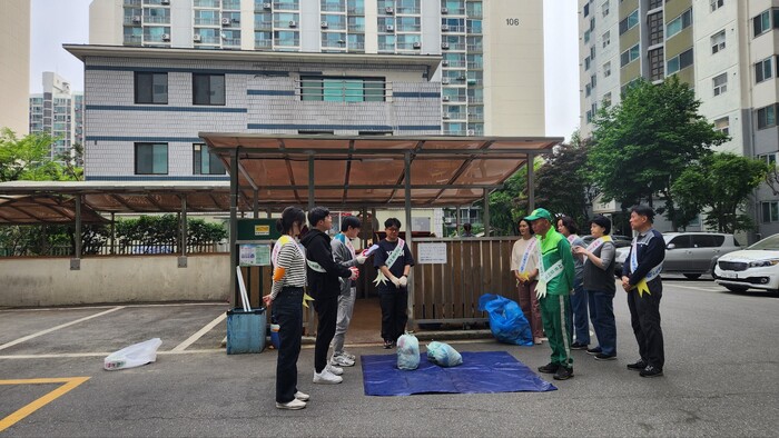 경기 수원시 권선구는 30일 호매실GS아파트에서 올바른 분리배출 문화 정착 및 생활폐기물 감량 유도를 위해 생활폐기물 샘플링 및 홍보캠페인을 실시했다. 사진은 이날 참여자들이 생활폐기물 샘플링을 하고 있는 모습. (사진=권선구청 제공)