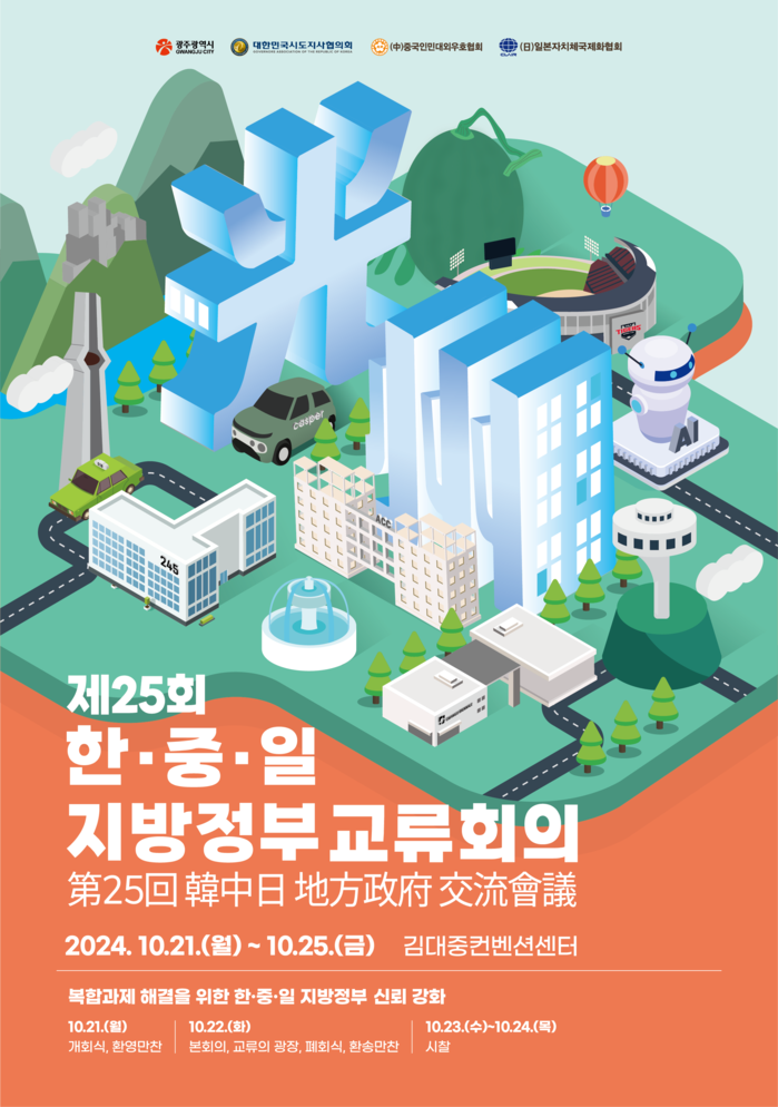 교류회의에는 강기정 광주시장, 유민봉 대한민국 시도지사협의회 사무총장, 양완밍 중국인민대외우호협회 회장, 야스다 미츠루 일본자치체국제화협회 이사장 등 한중일 지방정부 관계자 400여명이 참석한다.