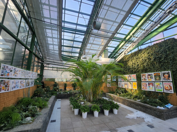 | 청라사업소 온실에 환경그림과 학교안전ON 입상작이 전시돼 있다. (사진=인천환경공단) |