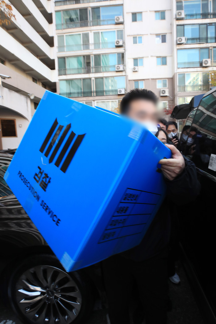 | ▲ 대장동 개발 로비·특헤 의혹 사건을 수사 중인 검찰이 17일 곽상도 전 의원의 자택 압수수색을 마친 후 압수품을 차로 옮기고 있다. (사진제공=연합뉴스) |