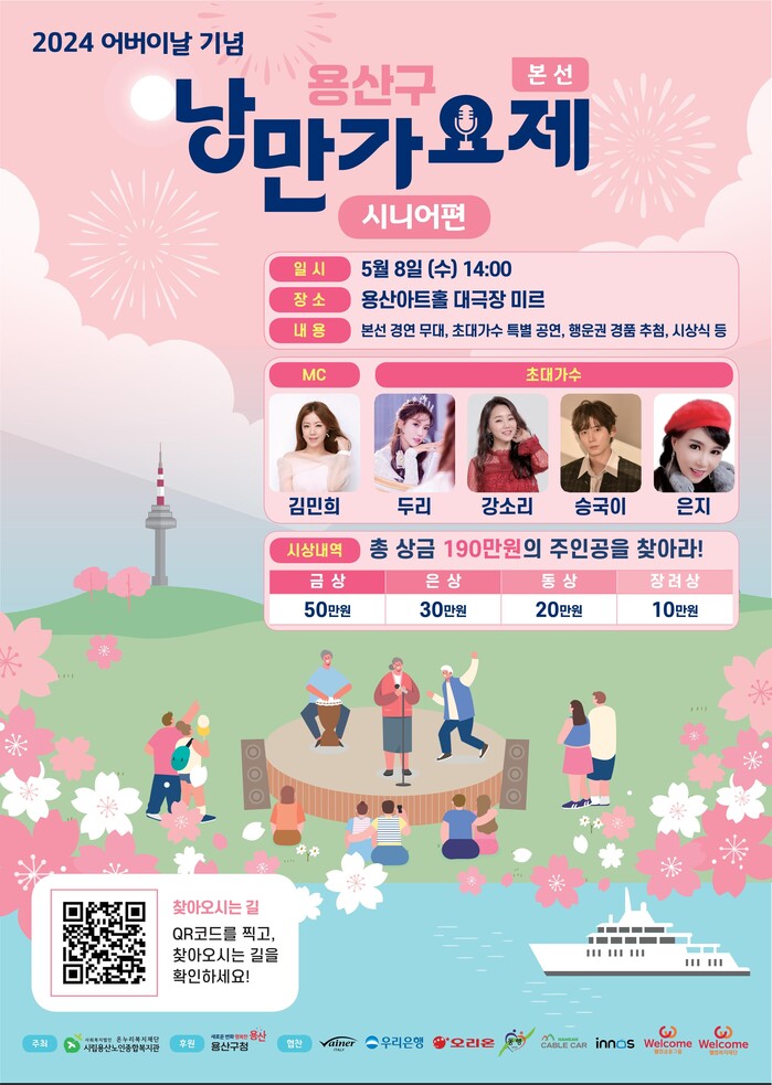 박희영 구청장은 “700석 규모 대극장에서 펼쳐지는 낭만가요제 무대에 오르시는 어르신들의 용기에 박수를 보낸다”며 “경연참가자, 관람객이 함께 즐기는 풍성한 잔치가 되도록 준비하겠다”고 밝혔다.
