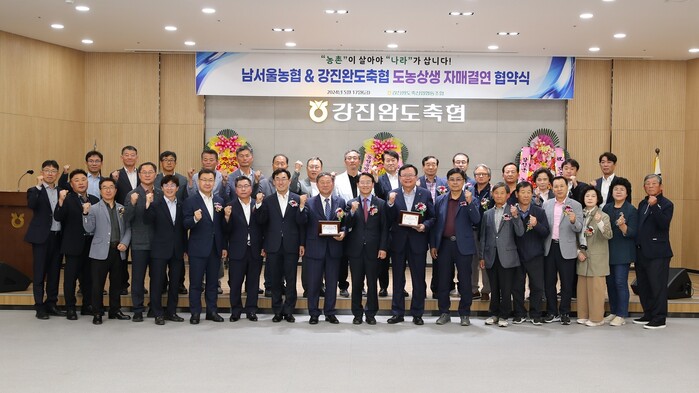 이날 협약식에는 강진원 강진군수, 김영래 강진완도축협 조합장, 안용승 남서울농협 조합장,