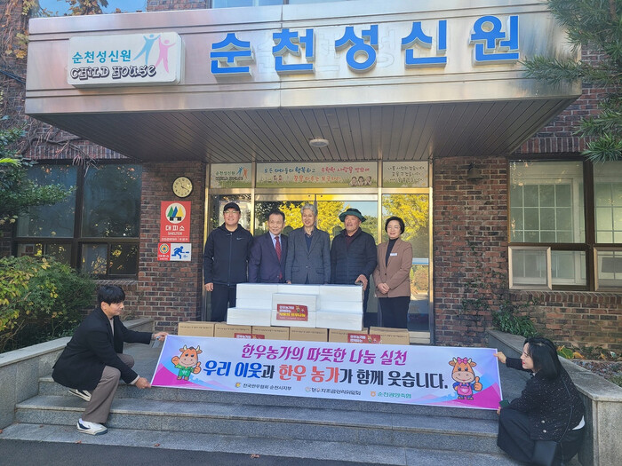 한편 (사)전국한우협회 순천시지부는 101농가가 회원으로 참여하고 있으며, 한우산업의 발전과 회원농가의 공동이익 증진뿐 아니라 지역사회 복지시설 및 어려운 취약계층에 꾸준히 온기나눔하고 있다.
