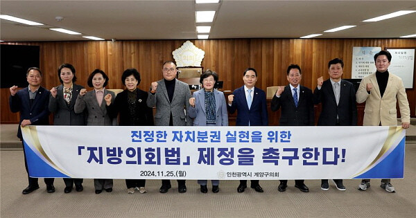 [인천=김형만 기자] 인천 계양구의회는 11월 25일 제257회 제2차 정례회 제1차 본회의에서 신지수 의원이 대표 발의한 “진정한 자치분권 실현을 위한 「지방의회법」 제정 촉구 건의안”을 만장 일치로 채택했다.