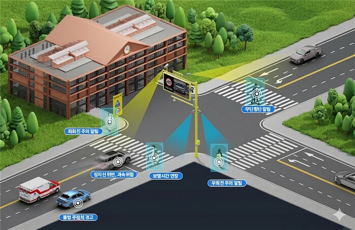 해당 시스템은 어린이보호구역내 보행자, 차량, 전동킥보드 등을 AI로 실시간 영상 분석해 사고 위험을 예측하고, 보행자와 차량에 사전 경고를 제공하는 시스템으로, 보호구역내 교통사고 예방에 효과가 클 것으로 기대된다.