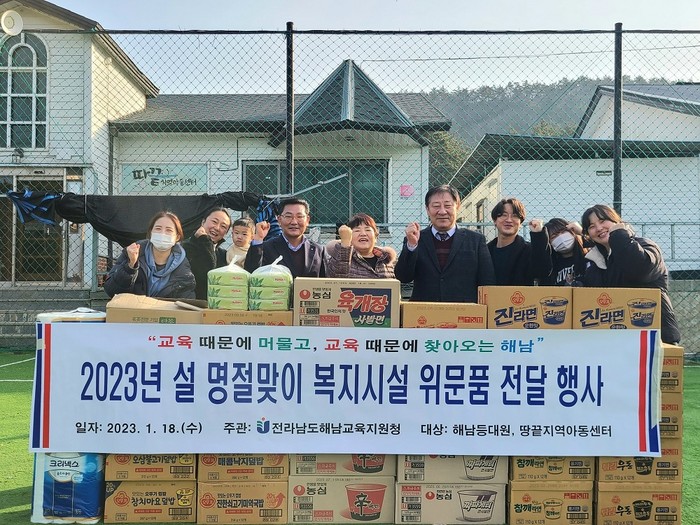 한편, 해남교육지원청은 직원들의 자발적 참여로 모금한 기금을 바탕으로 매년 명절을 맞아 사회복지시설 위문 활동을 진행하고 있으며, 배려와 나눔을 통해 따뜻한 지역사회를 만들고자 노력하고 있다.