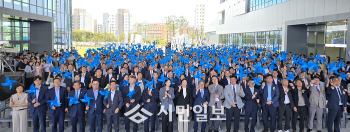 | ▲ 강기정 광주광역시장이 11일 광주 첨단3지구 인공지능집적단지에서 열린 ‘모두의 AI, 광주 비전 선포식’에 참석해 참석자들과 기념촬영을 하고 있다. /광주광역시 제공 |