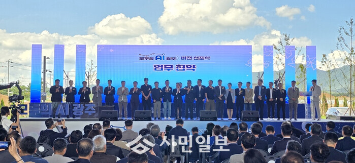 광주광역시(시장 강기정)는 11일 북구 첨단3지구 인공지능산업융합 집적단지에서 열린 ‘모두의 AI 광주 비전(누구나 일상에서 AI 기술을 향유하는 도시로 도약하겠다는 비전 공유) 선포식’에서 인공지능(AI) 및 반도체 분야 기관‧기업 21곳과 ‘광주형 인공지능 비즈니스 업무협약’을 체결했다.