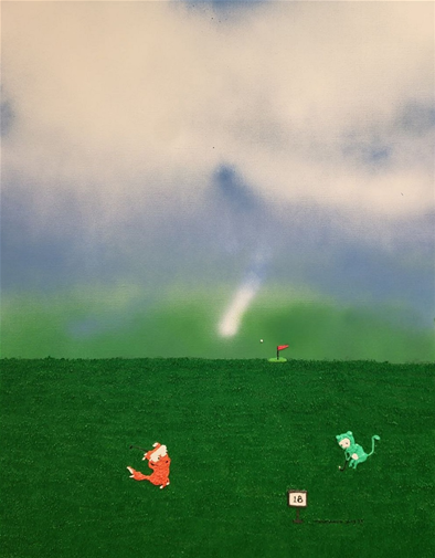 특히 엠제트아트 갤러리가 금번 전시에서 선보이는 작품 가운데 공개한 ‘오공이와 여시의 마지막홀 play(Oil on canvas, 50F)’의 경우 인간을 대신해 동물이 귀여운 모습으로 골프장안에서 상황을 묘사하고 있으며 캐릭터들의 표정에서 필드에서의 상황을 이야기해주고 있다는 점이 흥미롭다. 골프 첫 티삿의 떨림부터 바람 부는 날 한 홀을 마무리하는 퍼팅이 얼마나 어려운지 긴장한 여우의 모습에서 관객들에게 웃음을 이끌어내는 모습도 재미를 준다.
