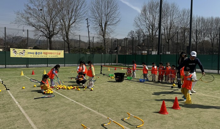 구 관계자는 “일반 테니스에 비해 부드러운 공과 가벼운 라켓, 낮은 네트를 사용하는 ‘매직 테니스’ 프로그램을 통해 아이들도 쉽게 테니스를 즐길 수 있도록 어린이 맞춤형 교육으로 준비했다”고 설명했다.