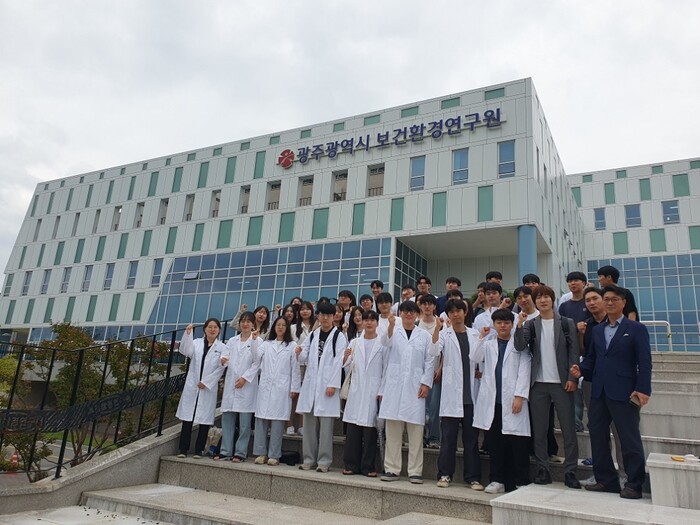 | ▲ 광주광역시보건환경연구원, 20일 전남대학교 수의대생(본과 3학년) 대상 현장실습 후 기념촬영 / 광주광역시 제공 |