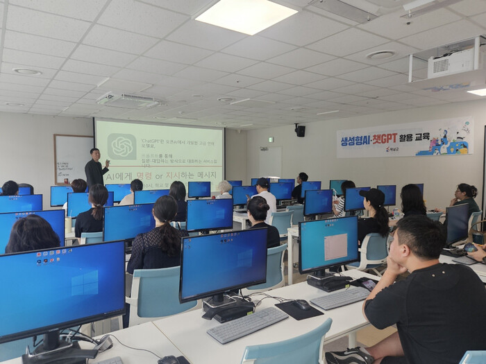매주 목요일과 금요일 2시간씩 진행되는 교육에서는 챗GPT 활용법을 비롯해 제미나이(Gemini), 클로드(Claude), 펠로(Felo) 등 다양한 생성형AI 프로그램을 직접 실습해보는 과정을 통해 AI의 다양한 활용법을 익히고 있다.