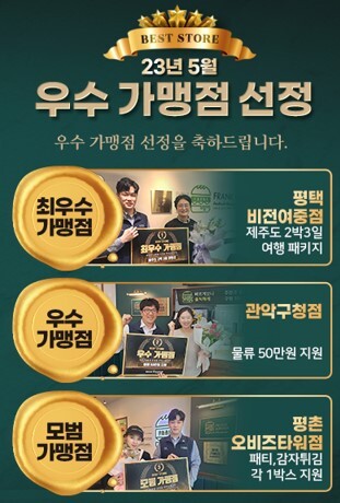 5월 최우수 매장으로 선정된 평택 비전여중점 점주는 “최우수매장에 선정될 수 있어 무척 기쁘고, 늘 변함없이 청소, 청결, 위생에 최선을 다하는 평택비전여중점이 되겠다”라고 전했으며, 우수 매장에 선정된 관악구청점 점주는 “깨끗하고 맛있게 가족들이 먹는 음식이라는 마음으로 고객이 다시 생각나서 발걸음 하는 매장이 될 수 있도록 직원들과 열심히 만들고 매장도 청결히 관리했으며 앞으로도 우수매장이 지속될 수 있도록 노력하겠다”라고 말했다.