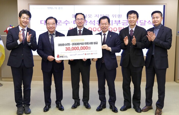 문영훈 행정부시장은 “어려운 경제 여건에도 나눔 실천을 위해 노력을 아끼지 않은 대창운수와 대창석유에 깊이 감사드린다”며 “앞으로도 따뜻하고 촘촘한 돌봄도시 광주를 실현하는데 최선을 다하겠다.”고 말했다.