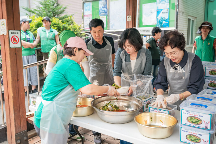 이옥미 둔촌2동 새마을부녀회장은 “그동안 부녀회원들이 각자 집에서 만든 반찬으로 매달 네 가구에 꾸준히 반찬 봉사를 해왔는데, 조금 더 많은 분과 마음을 나누고 뜻깊은 일을 하고자 행사를 진행했다”라며 “열무김치 드시고 건강하고 활기찬 여름을 나셨으면 좋겠다”라고 말했다.