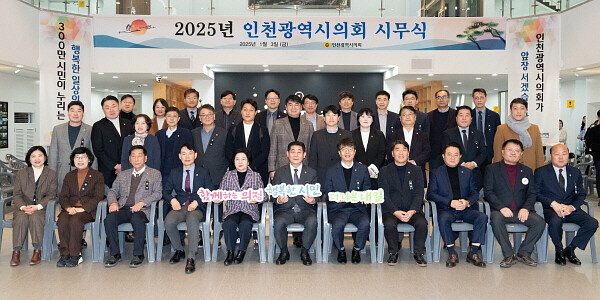 인천시의회는 지난 3일 의회 중앙홀에서 의원, 사무처 직원 등 100여 명이 참석한 가운데 ‘2025년 시무식’을 열었다. 올해 시무식은 전남 무안공항 여객기 참사를 애도하며 차분한 마음가짐으로 진행됐다.