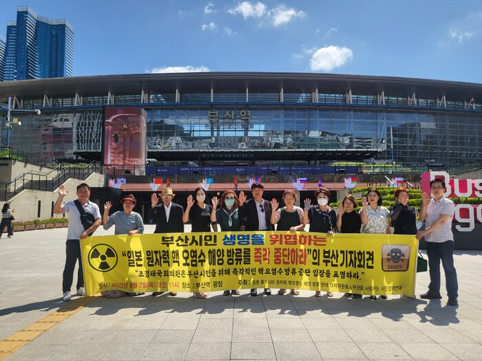이와 함께 국민의 힘 소속 부산시 당 국회의원들과 위원장 조경태 국회의원을 향해 진정으로 부산시민을 건강 주권을 보호하면 중앙당에 즉각적인 방류 중단 입장 표명할 것을 강력히 촉구하고, 일본 후쿠시마 핵 오염수 방류 관련 대책 수립을 촉구했다.