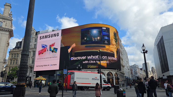 | ▲ 삼성전자가 영국 런던 피카딜리 광장에서 진행하는 '삼성 비전 AI(Vision AI)' 옥외광고 모습. (사진=삼성전자 제공) |