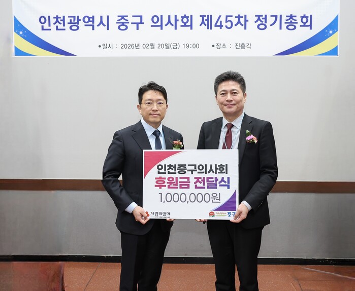 한편 성금 전달식은 지난 20일 신포동에서 개최된 ‘2026년 중구의사회 제45차 정기총회’ 현장에서 진행됐다.