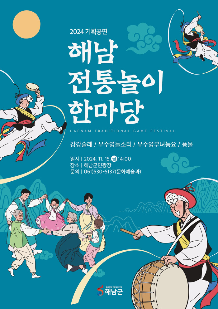 이와 함께 해남 출신 국악 전공자들이 활동하는 전문예술단체 해원의 풍물굿과 해남군 10개 읍면 연합풍물패 공연도 볼거리이다.
