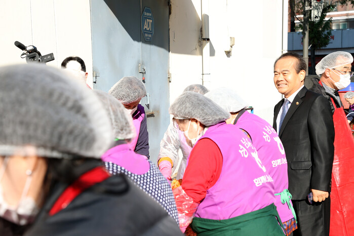 [성남=오왕석 기자] 성남시의회 이덕수 의장이 7일 수진2동 농협창고에서 열린 ‘성남농협 김장담그기’행사에 참석했다.