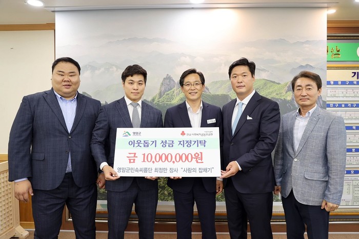 [영암=정찬남 기자] 영암군민속씨름단(감독 김기태)의 주장 최정만 장사는 지난 18일 아동복지시설인 영암영애원에 불우이웃돕기 성금 1천만 원을 지정 기탁했다.