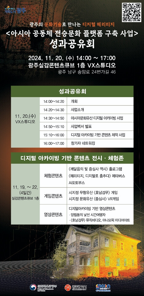 광주시가 지난 2020년부터 총사업비 50억원을 투입, ‘아시아공동체 전승문화 플랫폼 구축사업’을 추진하고 있다. 이 사업은 광주의 인공지능, 문화기술을 활용해 문화유산을 디지털 자료 전산화하고 이를 콘텐츠산업으로 확산시키는 광주형 문화유산 보존‧활용 모델을 목표로 하고 있다.
