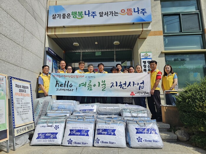 [나주=황승순 기자]나주시 영산동 지역사회보장협협의체(이하 지사협)는 지난 14일 통장단이 참여한 가운데 ‘시원한 여름 이불 지원사업’ 행사를 갖고 취약계층 거동이 불편한 노인 및 장애인 50가구에 여름 이불을 전달했다고 19일 밝혔다.