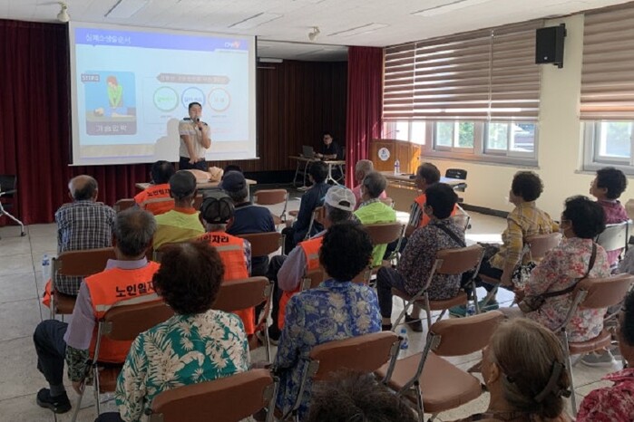 주요 교육 내용은 ‘폭염 예방수칙 및 온열질환자 대처 방법’, ‘심폐소생술 안내 및 실습’, ‘기도 폐쇄 시 응급처치법’, ‘비응급상황 119신고 자제 홍보’ 등이다.
