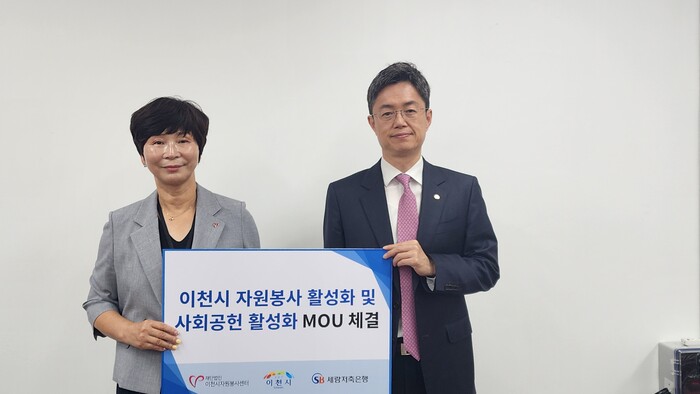 [시민일보 = 민장홍 기자] 경기 이천시 소재 세람저축은행이 최근 (재)이천시자원봉사센터와 ‘이천시 자원봉사 활성화 및 사회공헌 활성화를 위한 업무협약(MOU)’을 체결했다고 밝혔다.